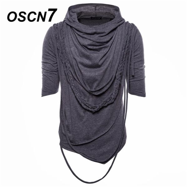 Oscn7 Casual High Street Short Sleeve Hooded T Shirt Men 2019