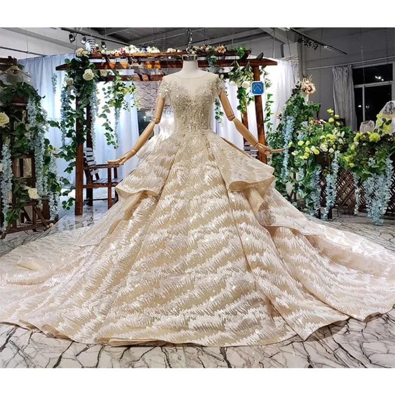 Bgw 31317ht Material Wedding Dresses Multi Layer Train O Neck