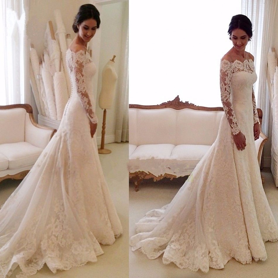 Amazon Com A Line Modern Wedding Dresses Long Sleeves Boat Neck