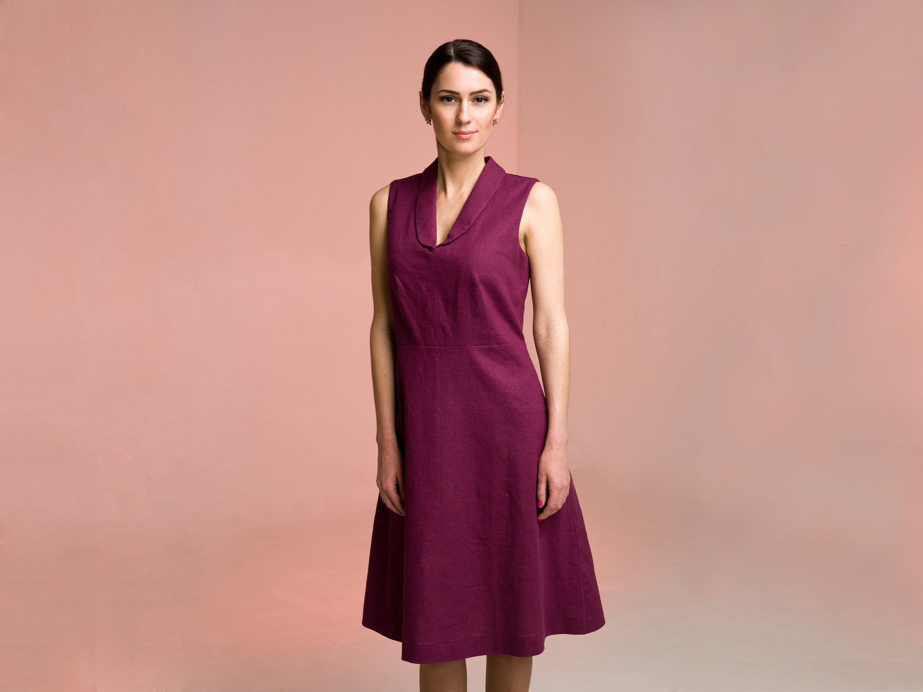 Purple Linen Dress Shawl Collar Summer Wedding Guest Dress Etsy