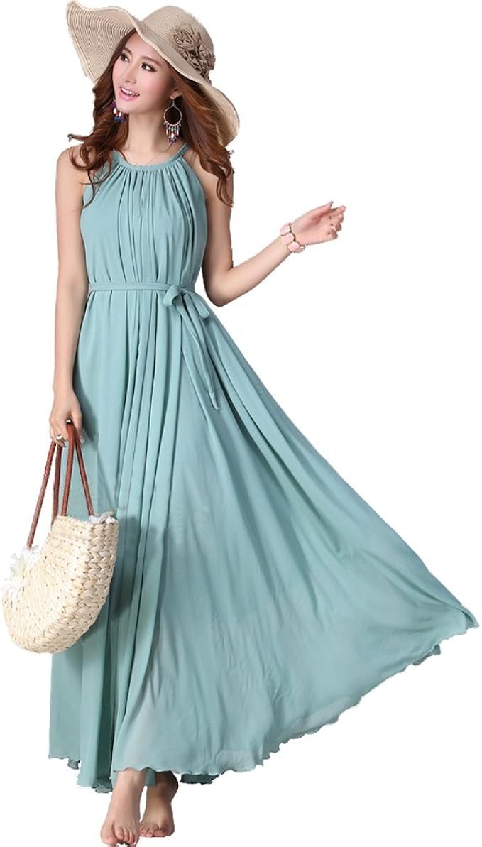 Medeshe Women S Mint Blue Chiffon Summer Beach Garden Maxi Dress