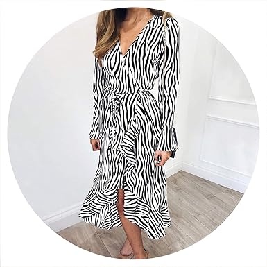 2019 Women Summer Chiffon Long Sleeve Zebra Striped Print Ruffles Casual A Line Midi Vintage Party Dresses White Xl At Amazon Women S Clothing Store