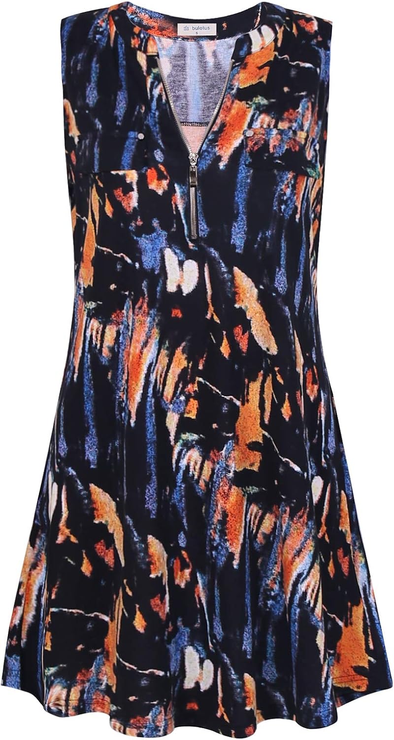 Bulotus Women S Sleeveless Front Zip V Neck Summer Casual Dress At