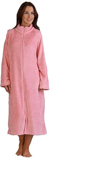Ladies Dressing Gown Fleece Warm Bathrobe Zip Up 10 12 14 16 18 20 22 24