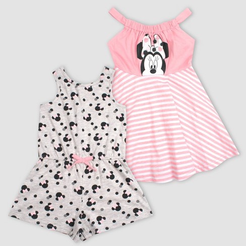 Toddler Girls Minnie Mouse 2pk Summer Dress And Romper Gray 5t Target