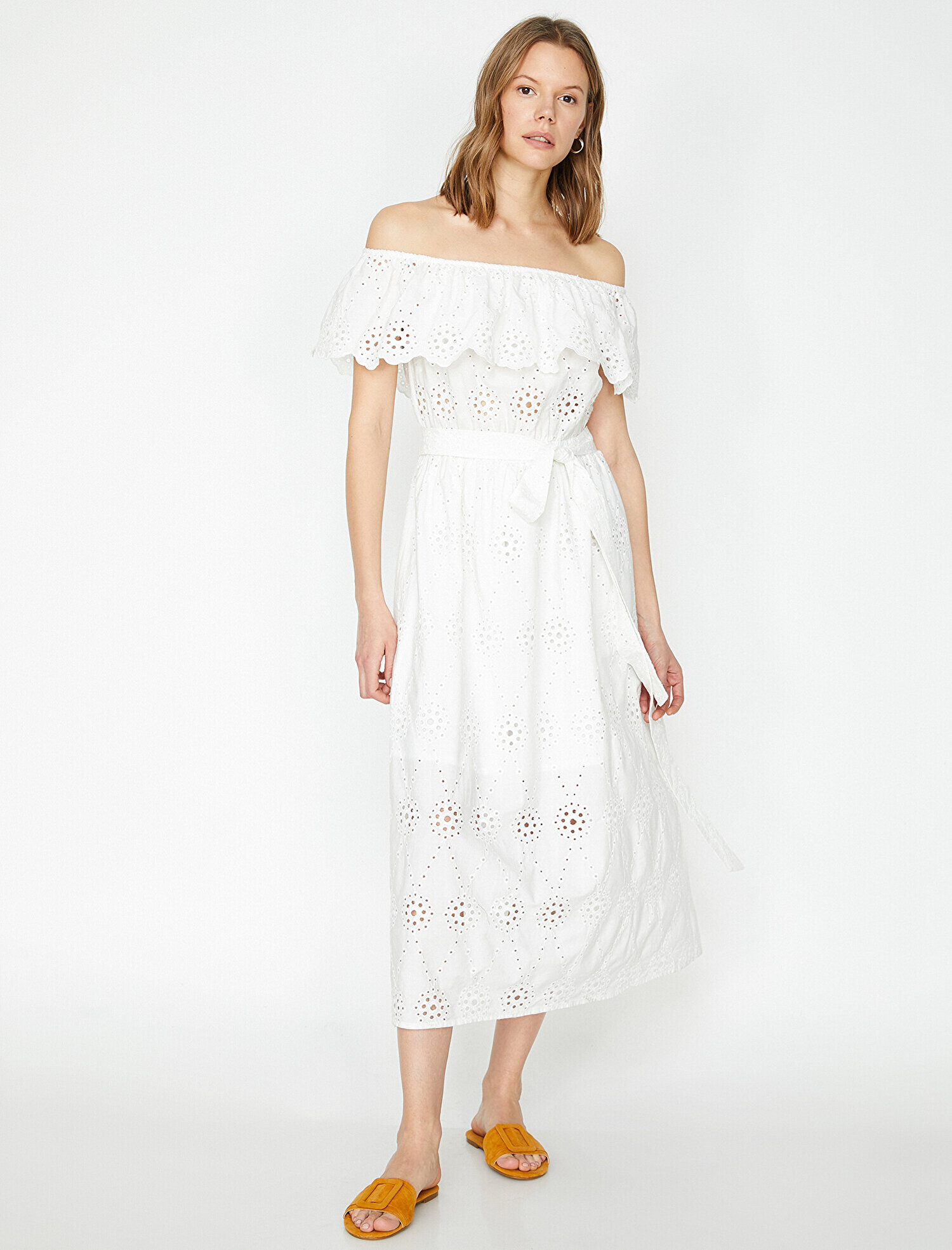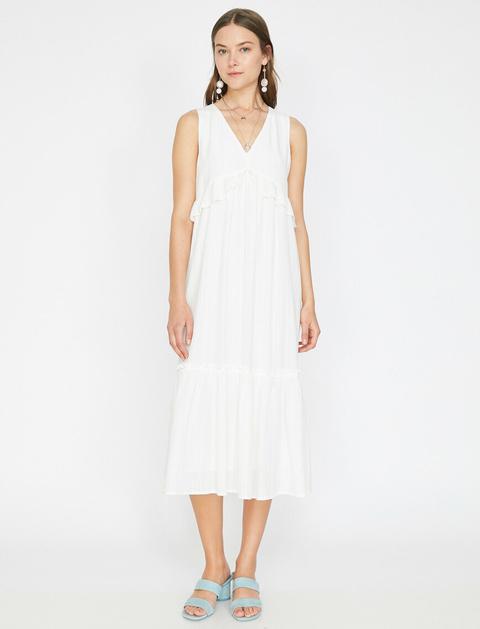 Koton Kadin Ekru The Summer White Dress Beyaz Yaz Elbisesi