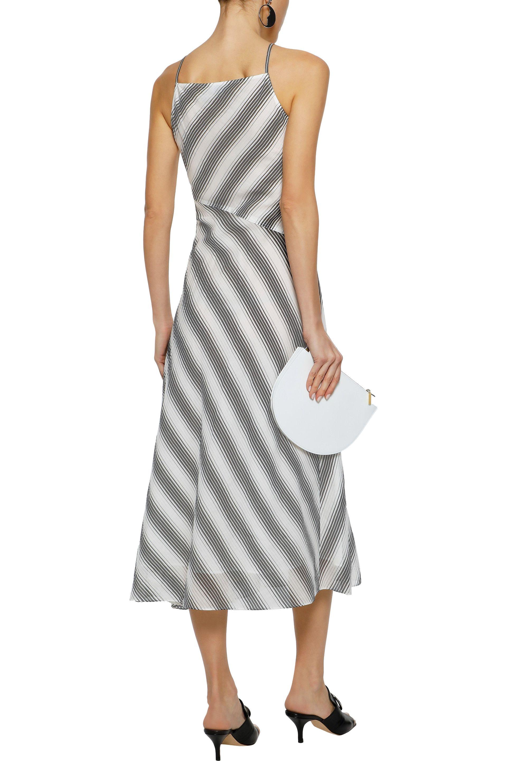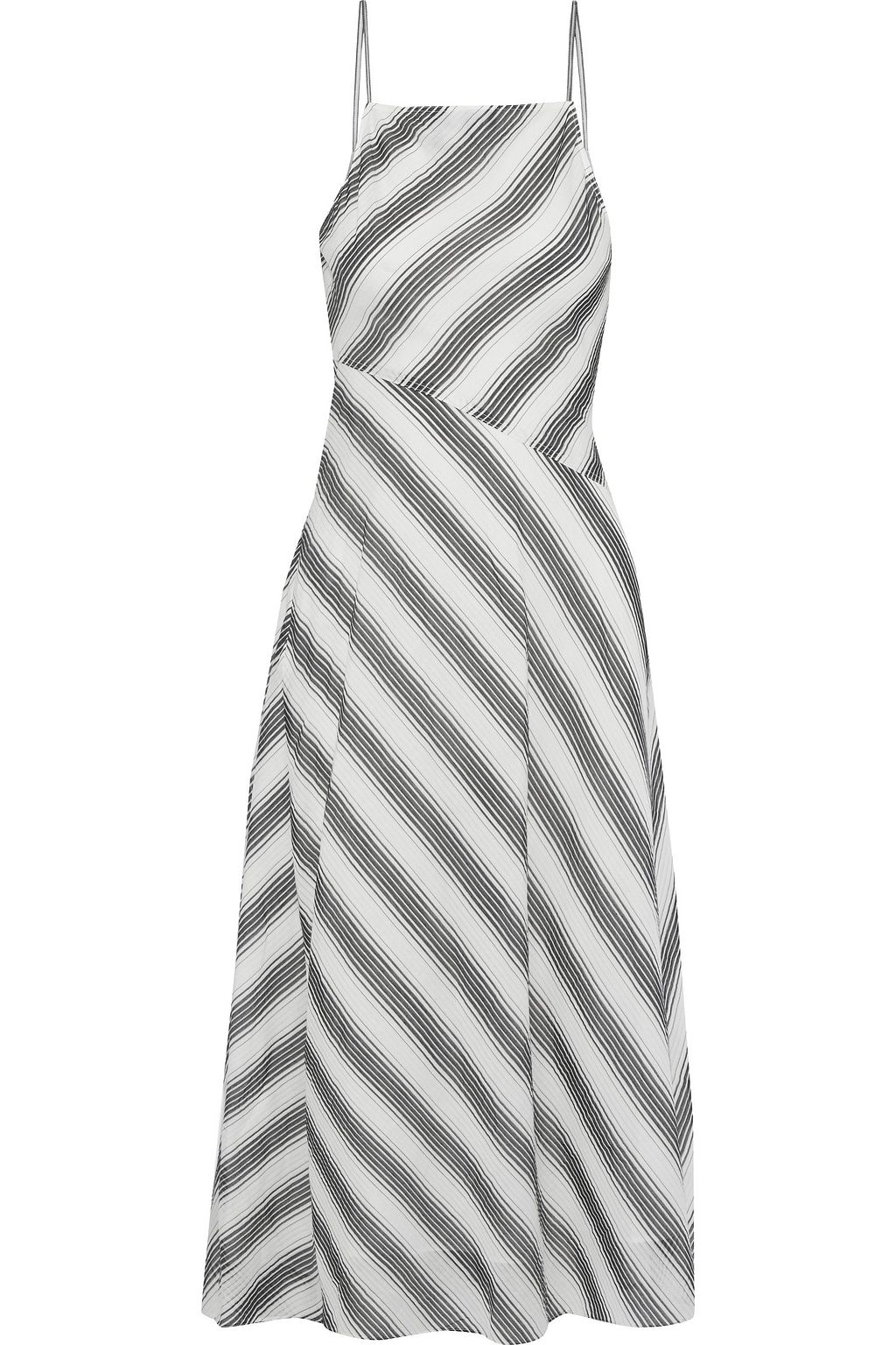 Theory Summer Athens Striped Cotton And Silk Blend Midi Dress