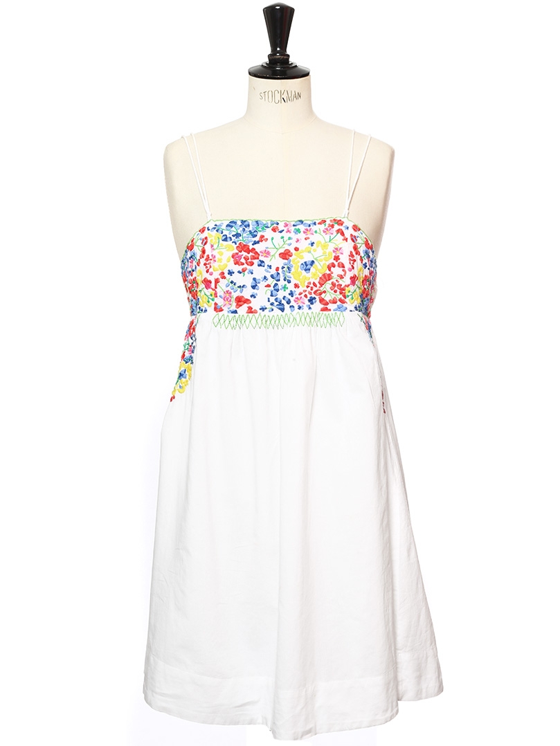 Louise Paris White Cotton Thin Strap Summer Dress Embroidered