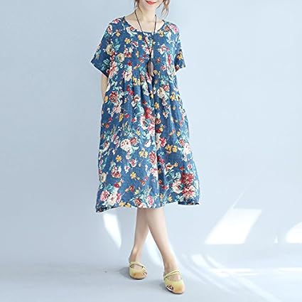 Amazon Com Xiurong Female Summer Dress Loose Thin Cotton Dress
