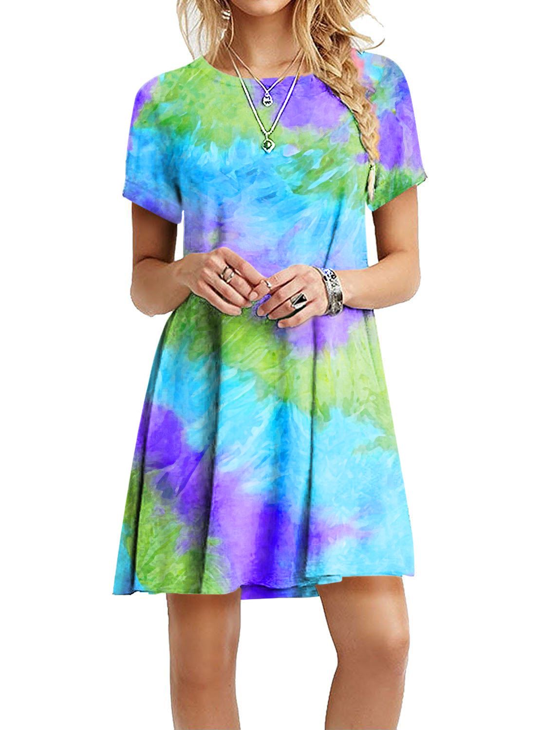 Yousity Women S Tie Dye Short Sleeve Casual Tops T Shirt Dress