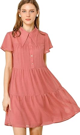 Joteisy Women S O Neck Ruffle Short Sleeve Tiered Casual Mini