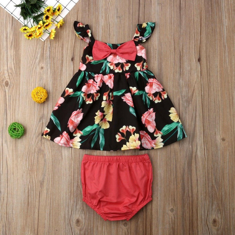 Casual Toddler Baby Girl Summer Flower Bow Tops Dress Shorts
