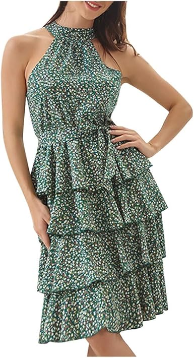 Farjing Women S Halter Neck Floral Summer Dress Casual Sundress