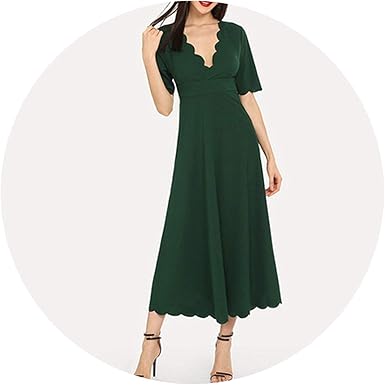 Green Deep V Neck Empire Waist Scallop Trim Maxi Dress Women Night