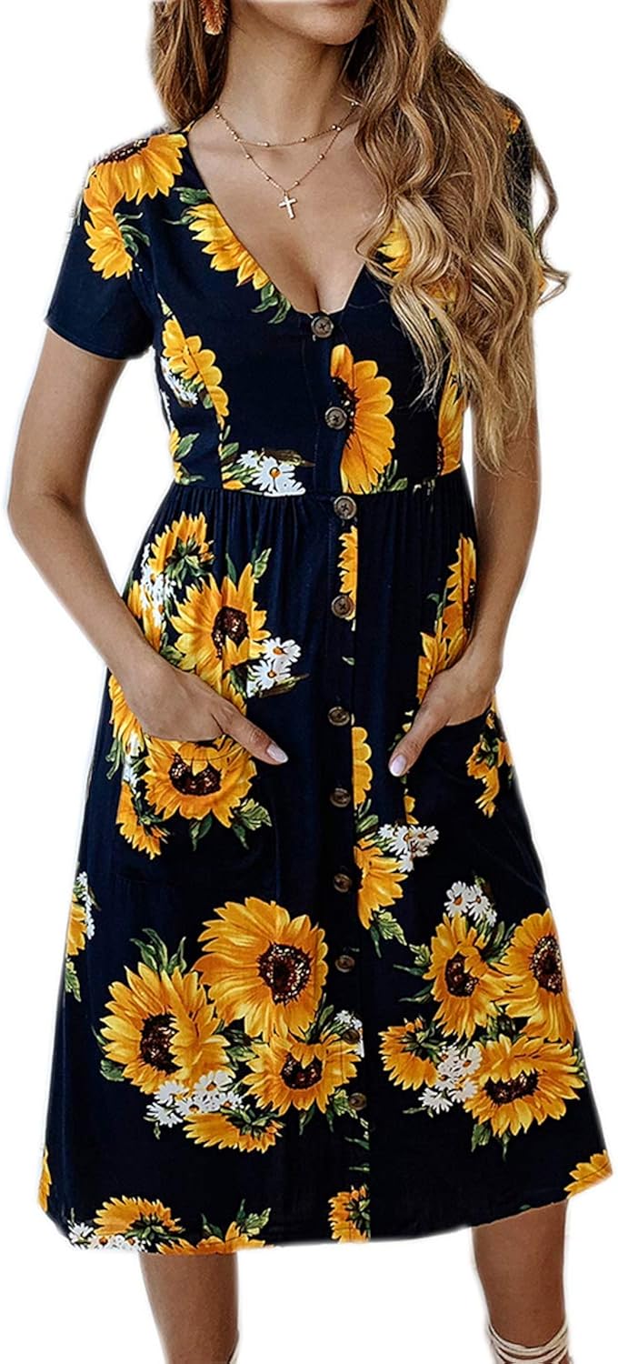 Walant Womens V Neck Summer Dress Short Sleeve Midi Skater Dress
