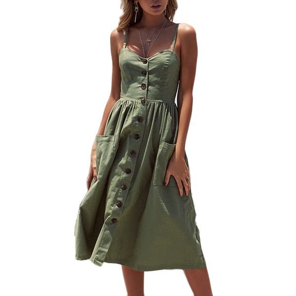 2020 Summer Dress Big Pockets Sleeveless Deep V Neck Day