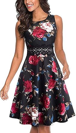 Women Vintage Summer Dresses Sleeveless Flower Mini Party Cocktail