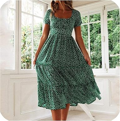 Sinrgan Casual Women Summer Vintage A Line Dress Green Short