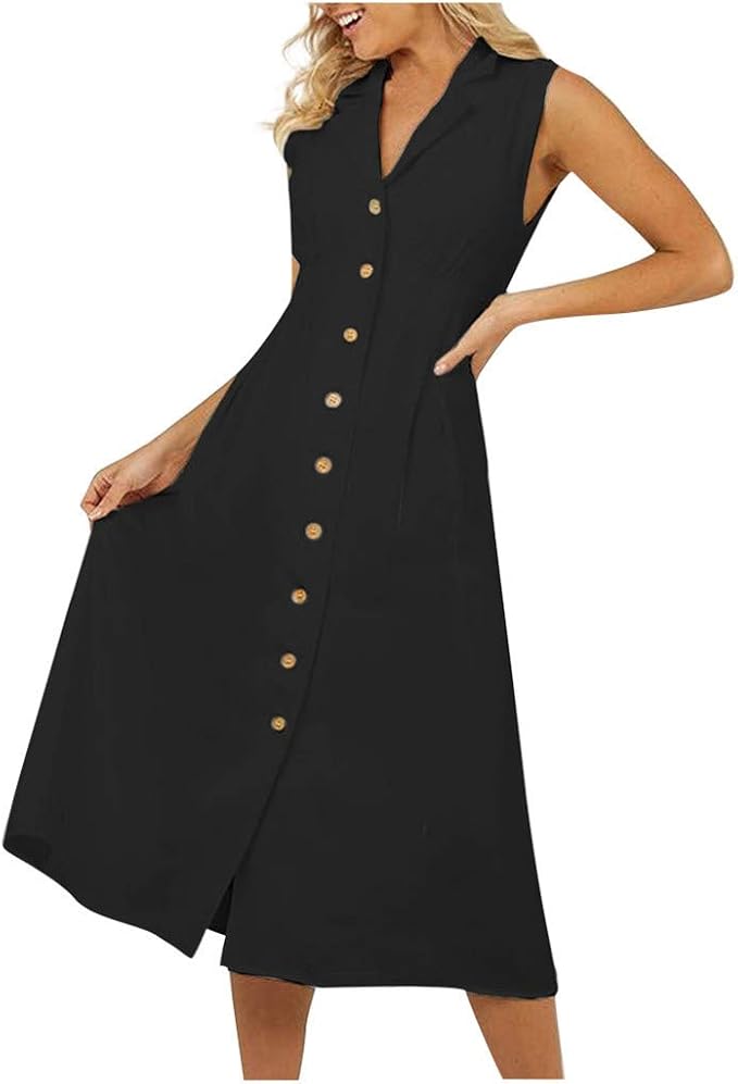 Womens Summer Dresses Levifun Ladies Women Midi Cotton And Linen Dresses Sexy Casual Sleeveless V Neck A Line Buttons Vintage Dresses Sundress Beach Boho Vintage Evening Prom Party Dresses Amazon Co Uk Clothing