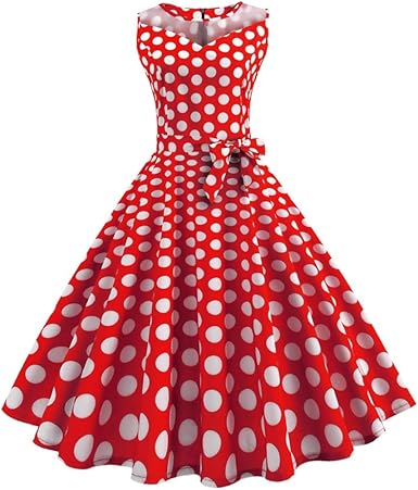 Wawer Vintage Summer Dresses For Women 40 S 50 S Vintage Swing Dress Casual Retro Dot Printing Sleeveless Bodycon O Neck Prom Dress For Evening Party Xxl Watermelon Red Amazon Co Uk Clothing