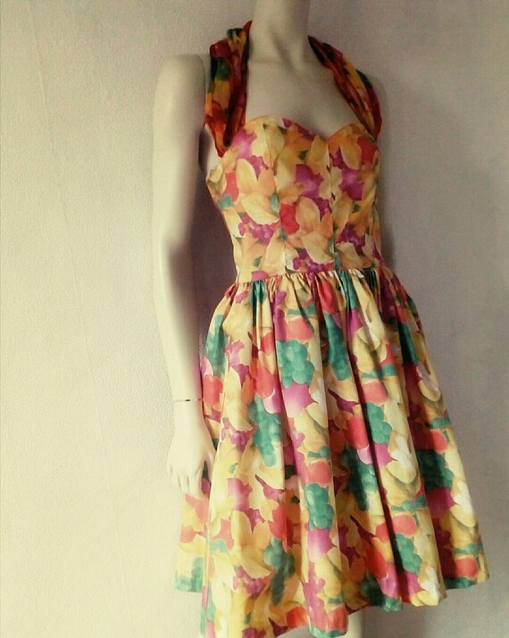 Vintage Floral Printed Halter Dress Sleeveless Summer Dress Etsy