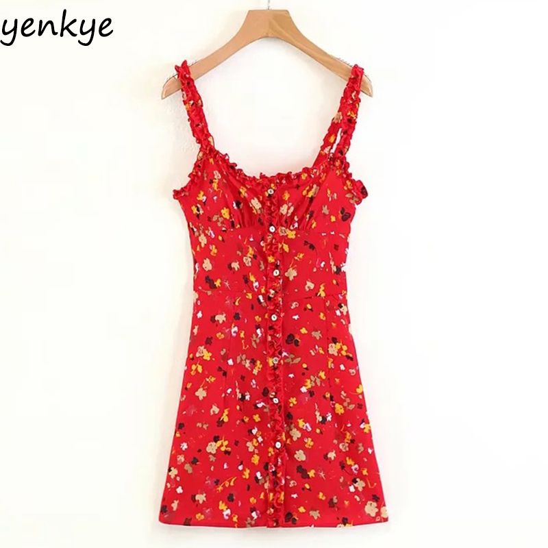 Vintage Summer Dress 2018 Sweet Women Red Floral Printed Sling
