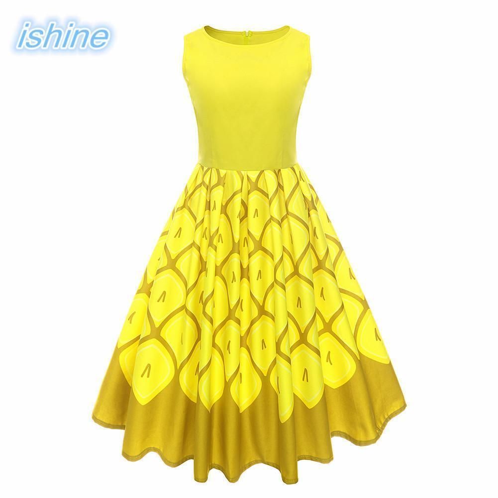 Sishion Retro Vintage Yellow Dress Women Sleeveless Plus Size A