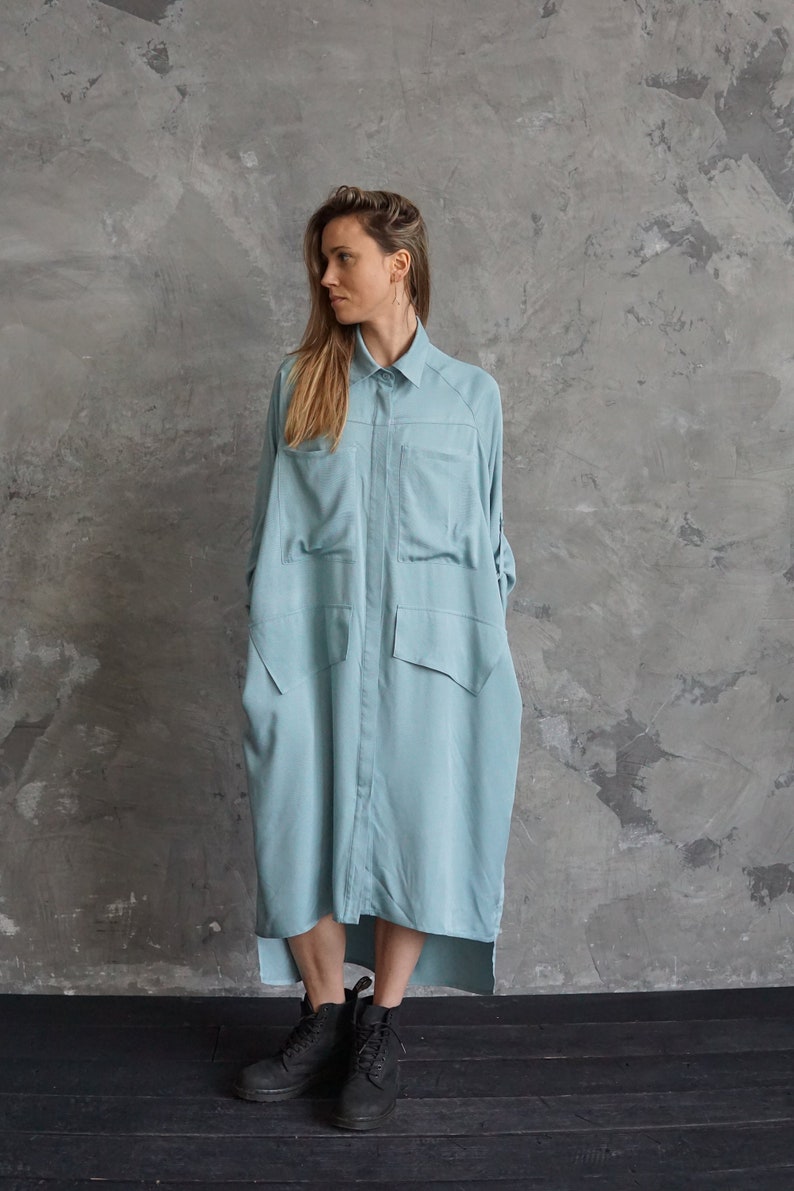 Mint Green Shirtdress Oversized Shirtdress Pastel Midi Etsy