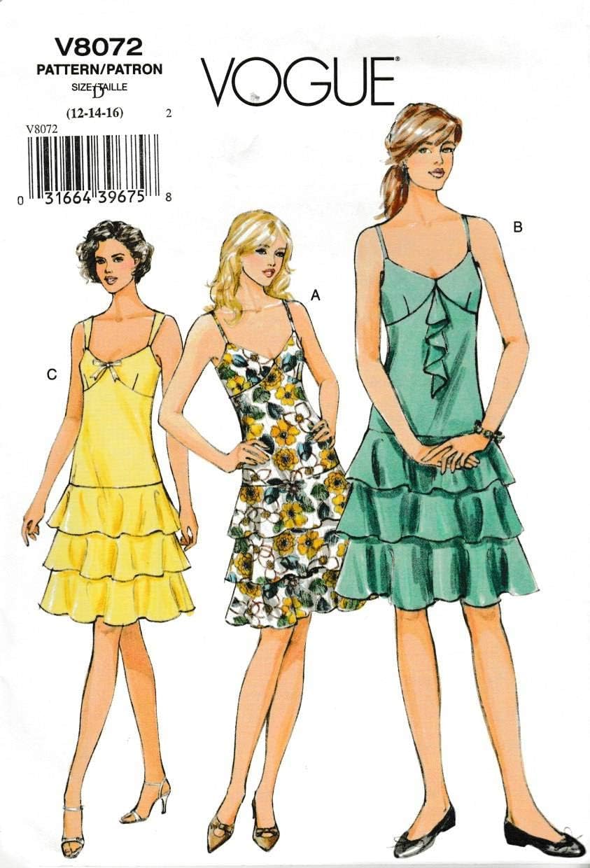 Amazon Com Vogue Sewing Pattern 8072 Misses 12 14 16 Easy Summer Dress Sundress Ruffles Arts Crafts Sewing