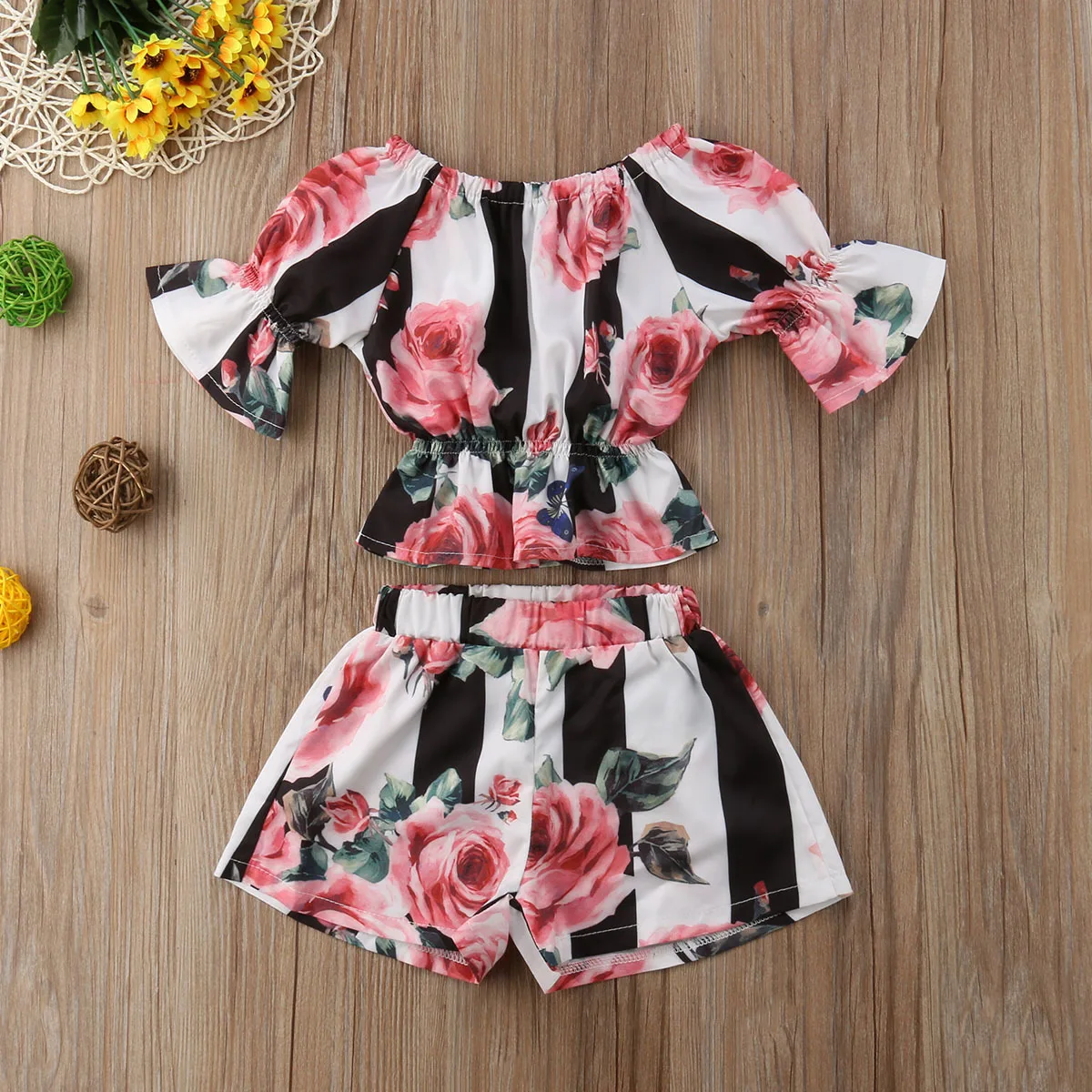 Uk Summer Clothes Baby Kid Girl Floral Off Shoulder Clothes Top