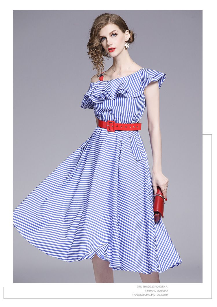 2018 New Fashion Women S Blue And White Striped Sashes Dress