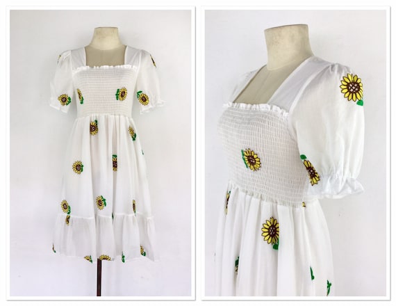 White Embroidered Floral Boho Dress Flower Power Dress Sheer Etsy