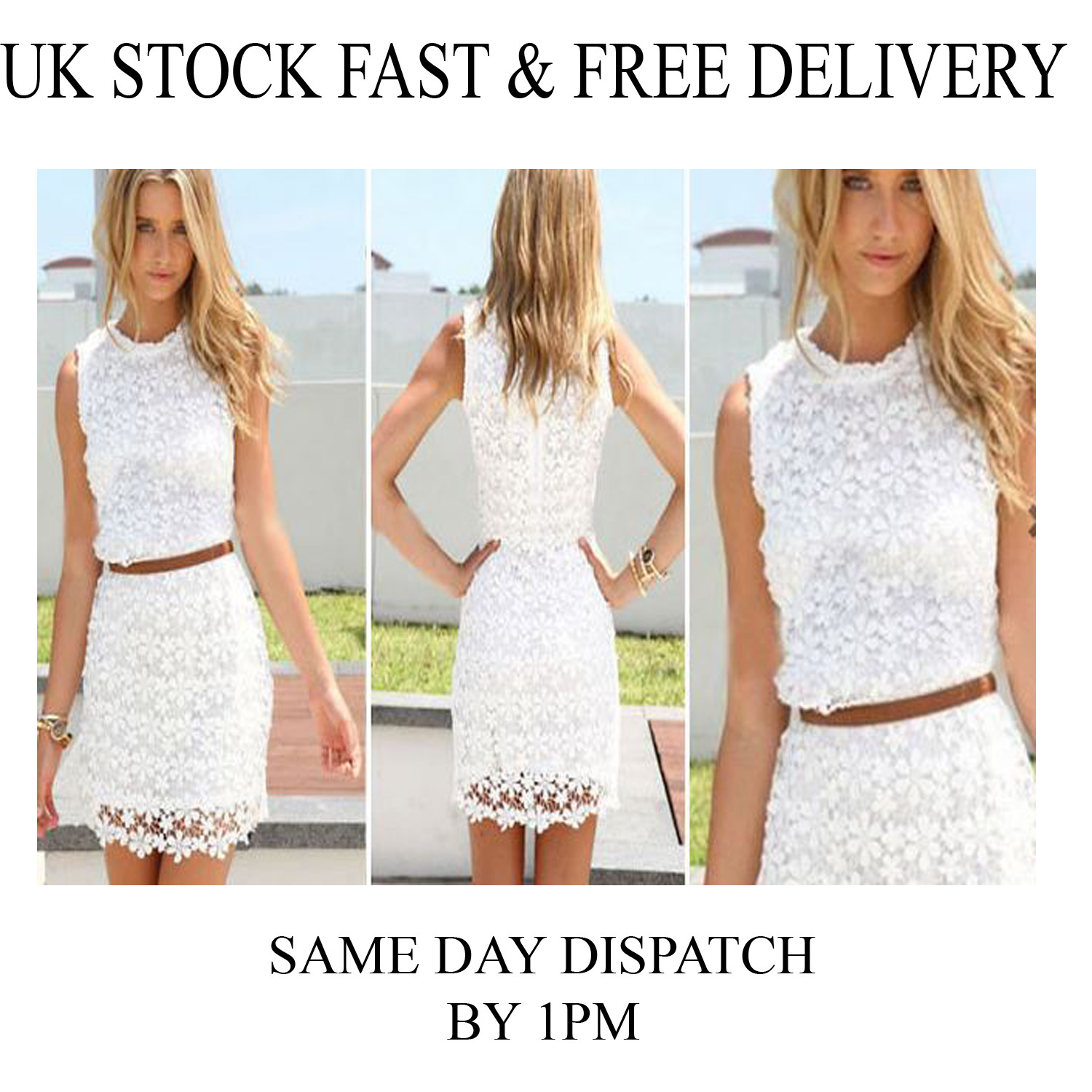 Womes Ladies Floral Overlay White Lace Summer Party Cocktail