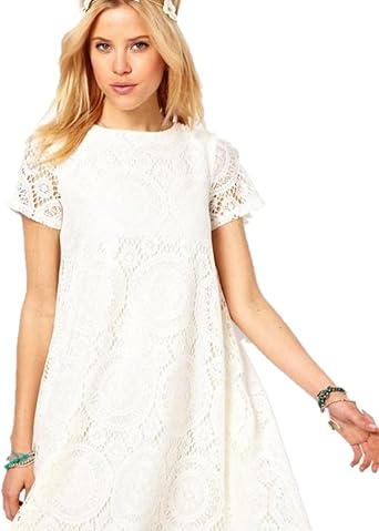 Women Casual Party Off White Short Sleeve All Over Lace Skater