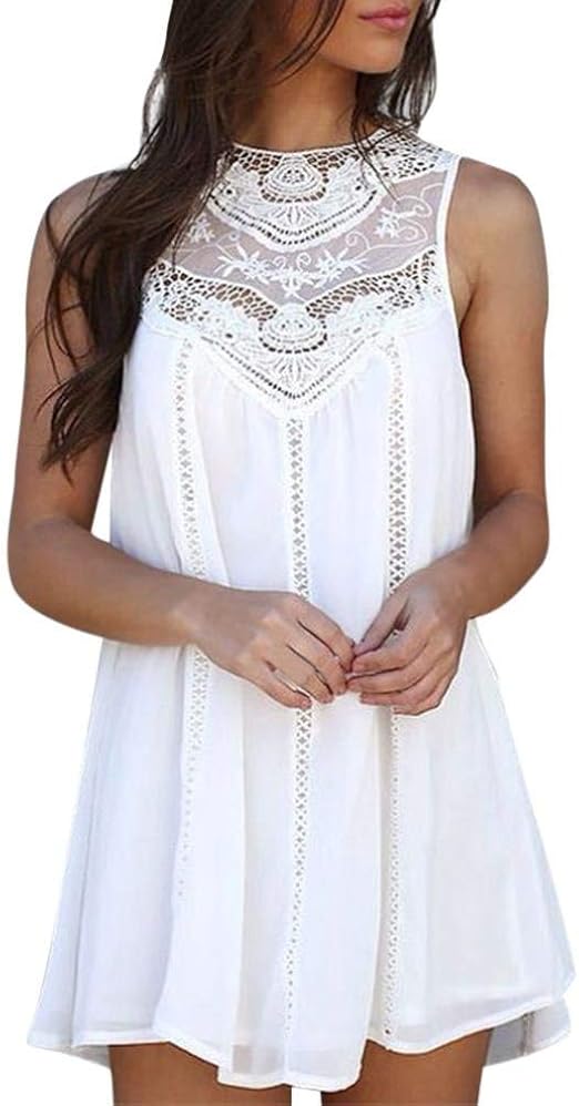 Womens Casual Lace Sleeveless Tassel Mini Dress Summer Loose Short