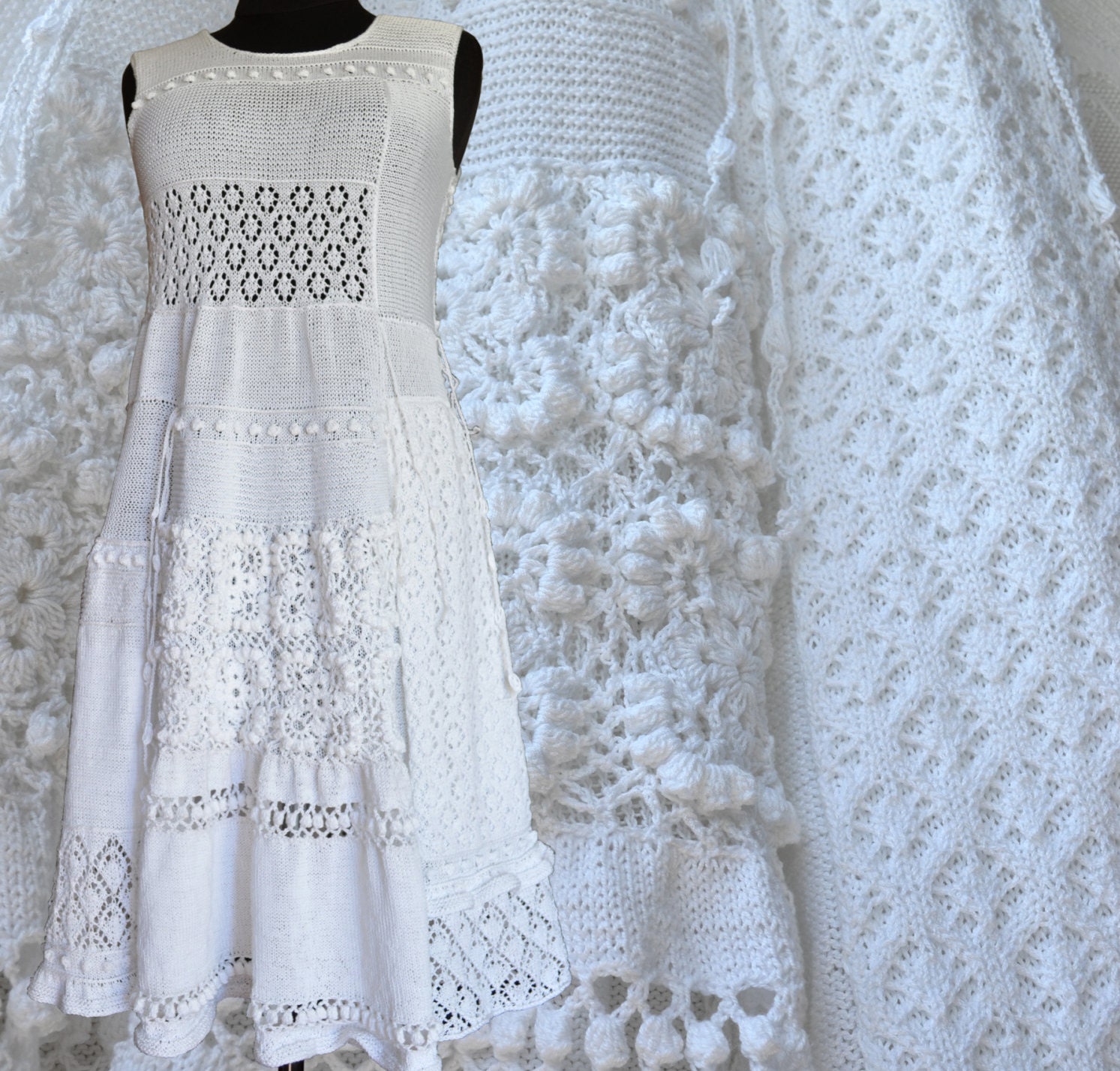 White Summer Dress Hand Knitted And Crocheted Dress Lace Cotton