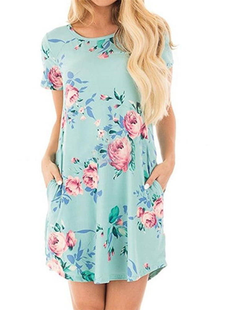 Sysea Floral Print Short Sleeve Casual Dress Summer Women