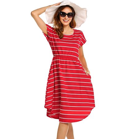 Vista Women S Summer Casual Stripe Elastic Waist Loose Beach
