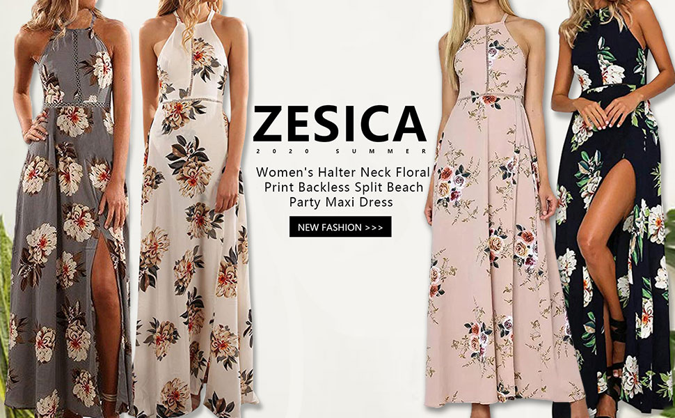 Be ready for any occasion in a halter dress. From casual summer dresses to fancy gowns you ll find the season s must have styles from your favorite designers. Women dresses summer halter o neck loose sleeveless chiffon print boho evening party beach floral long maxi dress. 3 3 out of 5 stars 3.