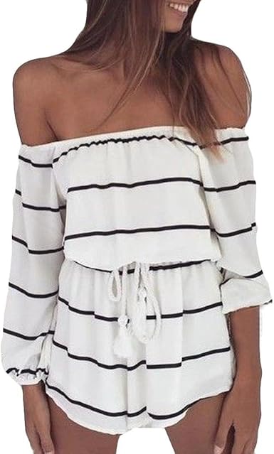 From short sleeve v neck jumpers and strapless rompers to cargo pocket jumpsuits and denim rompers you ll. This one piece wonder is easy to wear and accessorize. 4 4 out of 5 stars 1 518. Plumberry off shoulder loose waisted floral summer rompers for women.