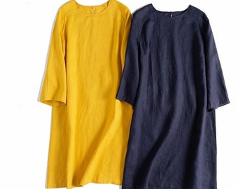 Yellow Summer Linen Dress Materniy Dress Pure Linen Shift Sundress