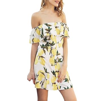Yinlinhe Yellow Floral Summer Dress Long Sleeve Off Shoulder Beach