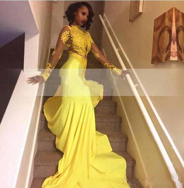 2019 Real Pretty Yellow African Lace Appliqued South African Prom