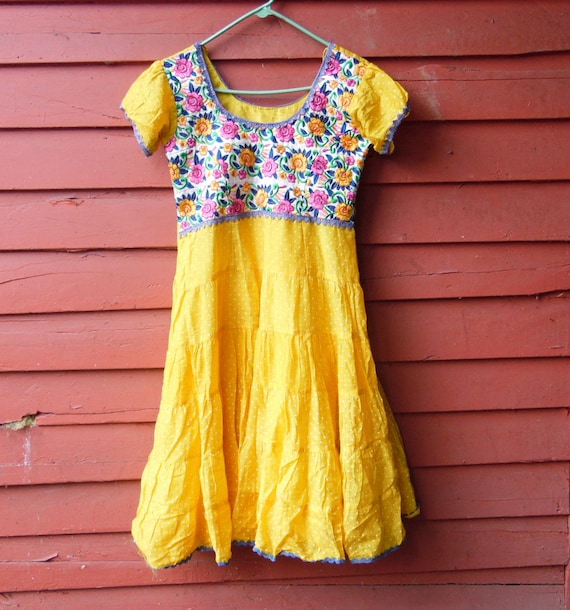 Vintage Yellow Embroidered Floral Polka Dot Mexican Summer Etsy