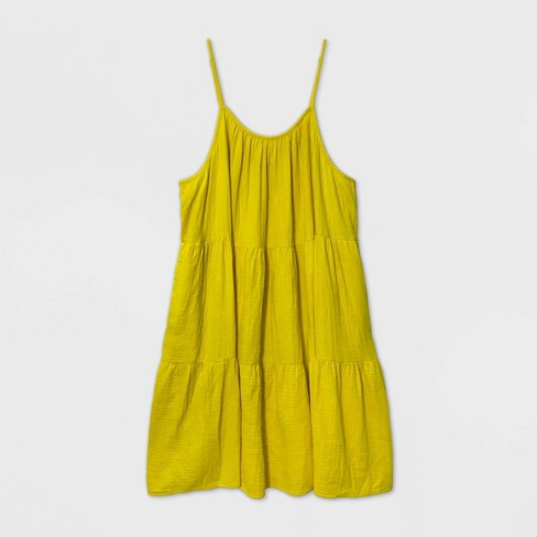 Women S Tiered Tank Dress Universal Thread Yellow Xs Target