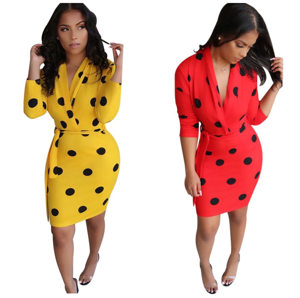 Fashion Explosion Models Womens Dress Polka Dot Print Straps Waist
