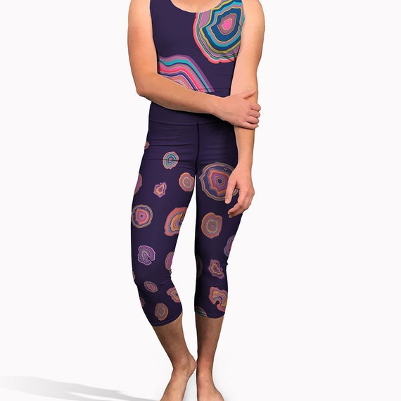 Purple Agate Print Yoga Capris High Waisted Short Yoga Pants Etsy