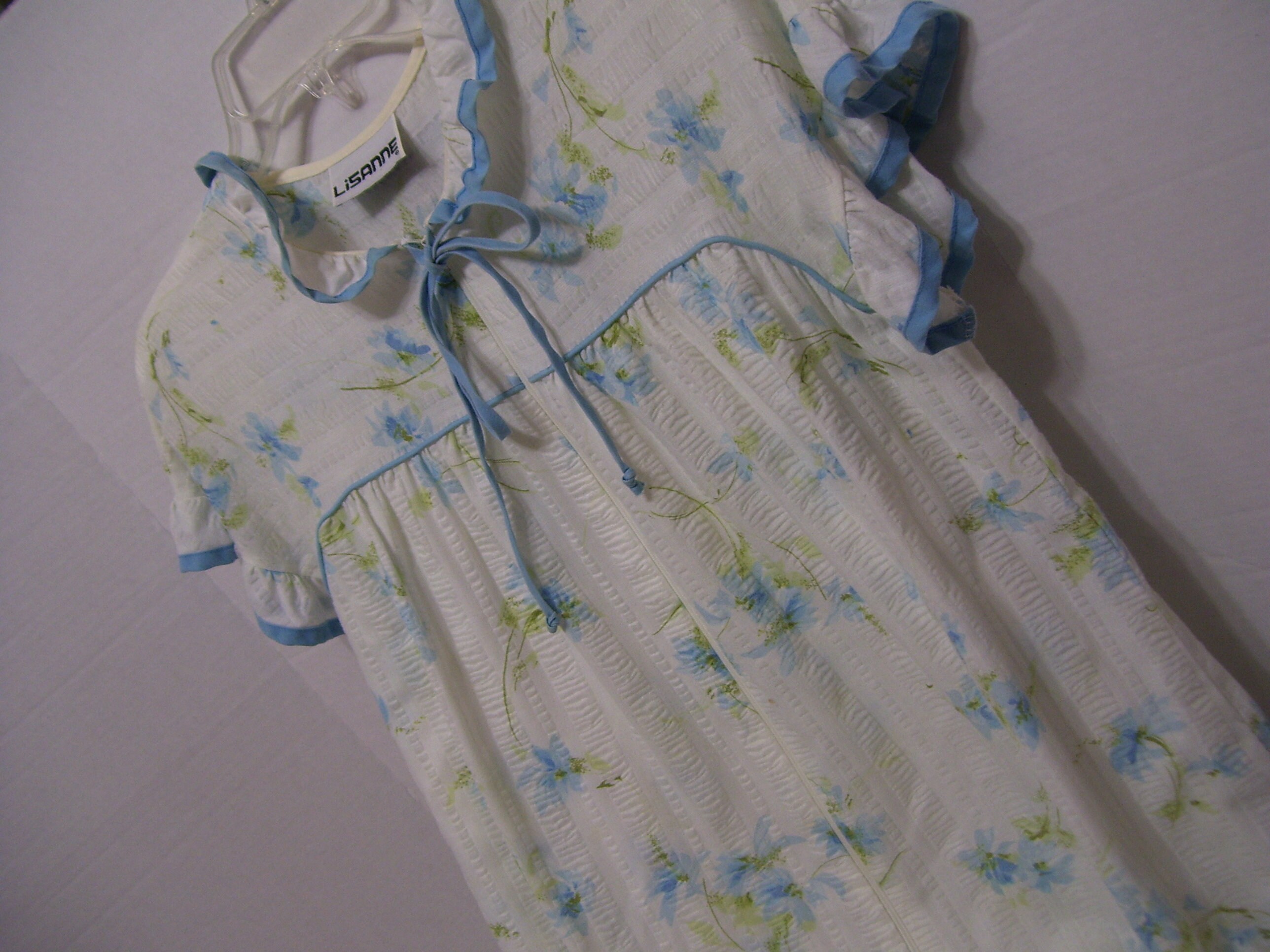 Robe Long Zip Front House Coat White Blue Floral Plisse Etsy