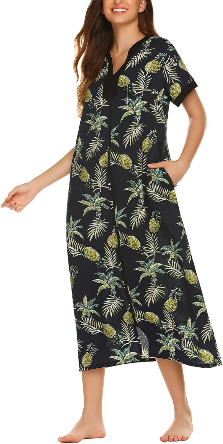 Luxilooks Women Nightgown Zip Front Robe Long Full Length Maxi Cotton Summer Duster Coat At Amazon Women S Clothing Store