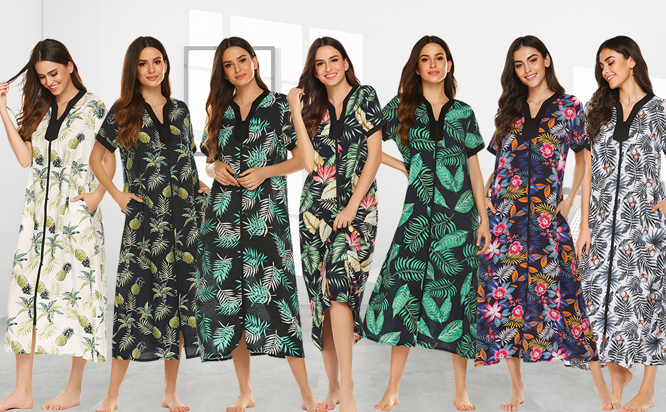Luxilooks Women Nightgown Zip Front Robe Long Full Length Maxi